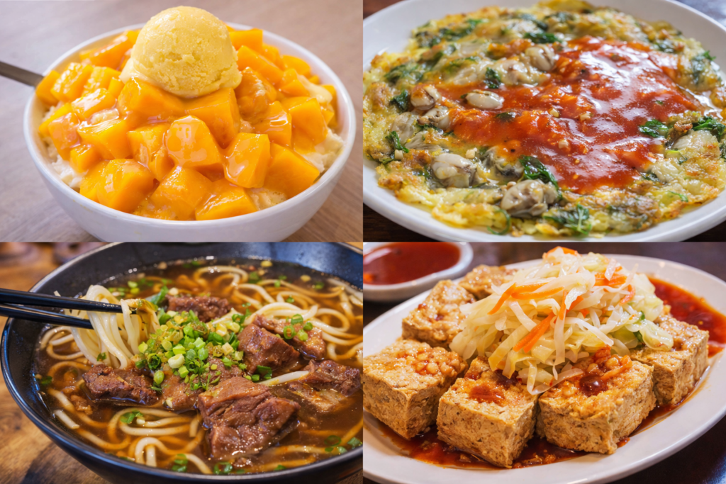 - 굴전 (오아젠): 바삭하고 쫀득한 식감에 신선한 굴이 듬뿍 들어간 대만 대표 간식입니다.