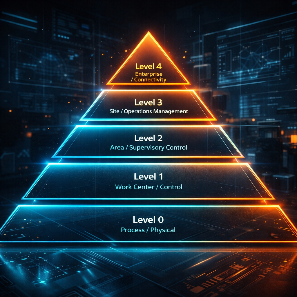 ISA-95는 공장 시스템을 피라미드 형태의 5단계 계층으로 정의합니다.